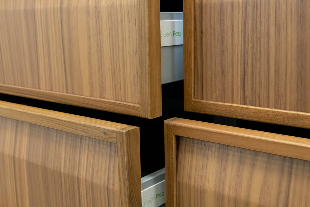 In its early years, the business focused on working with solid wood, then specializing in veneering slim panels from 2000, first just for the production of wooden doors, but later branching out into cabinet side panels and veneered doors. The company now supplies these products to all companies within the Group.