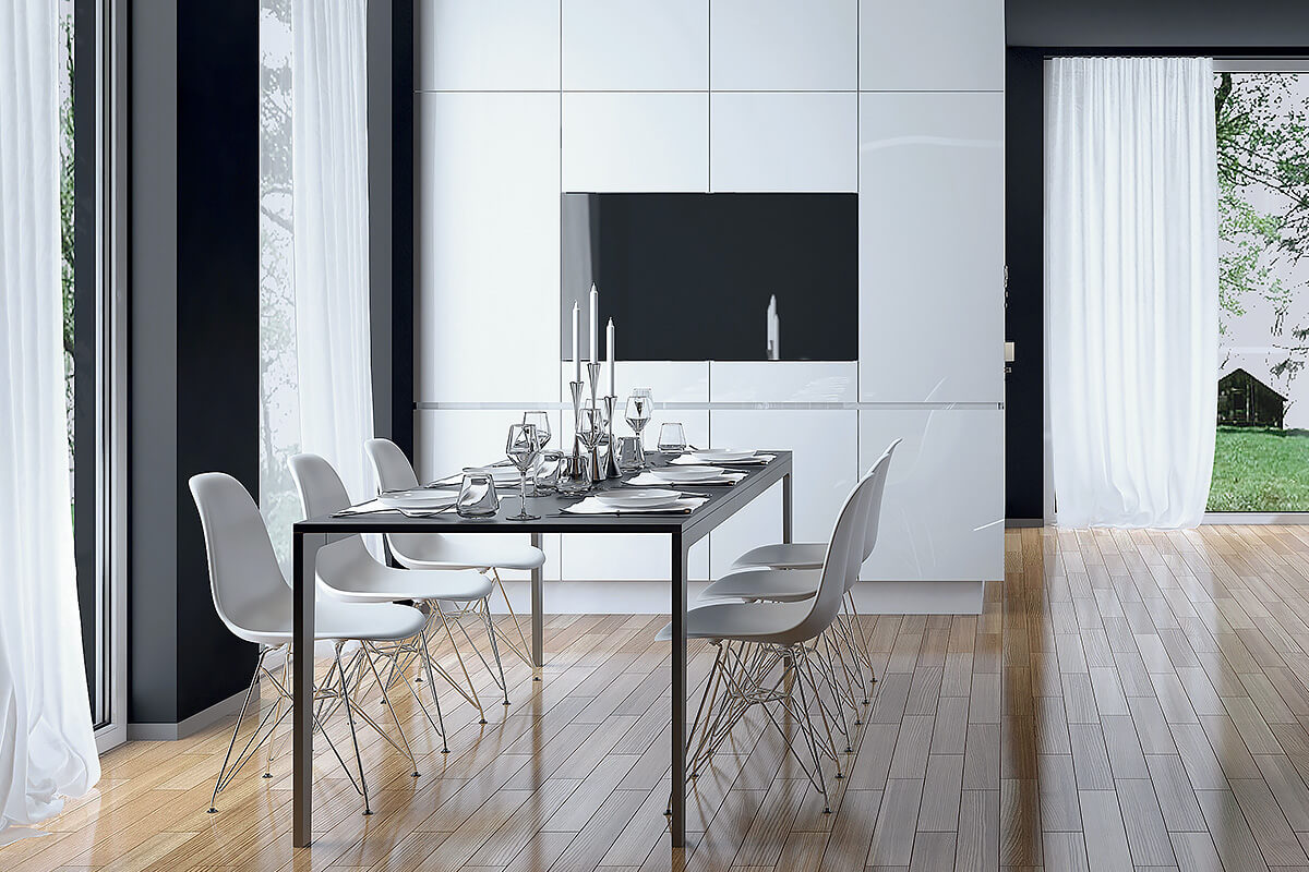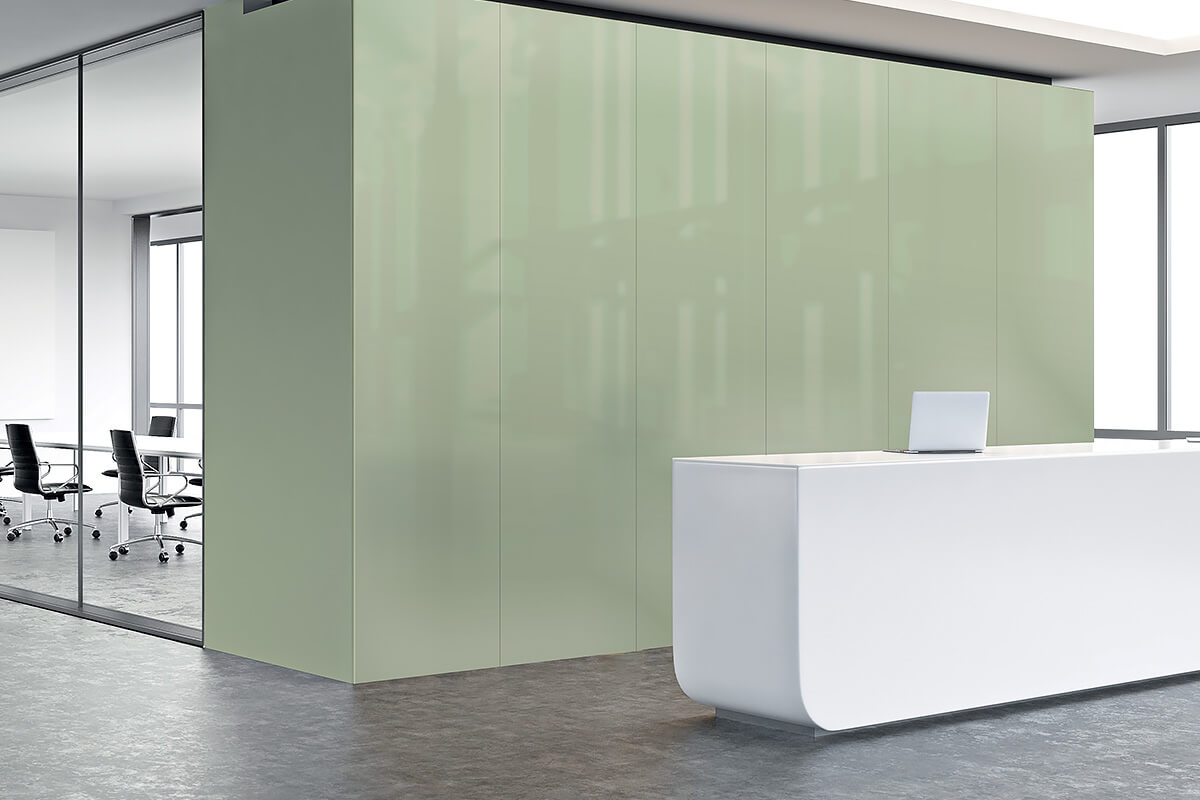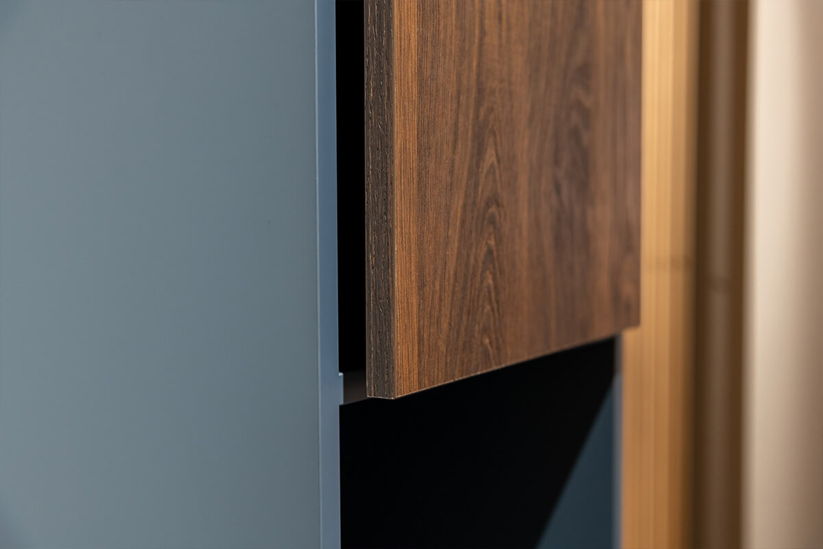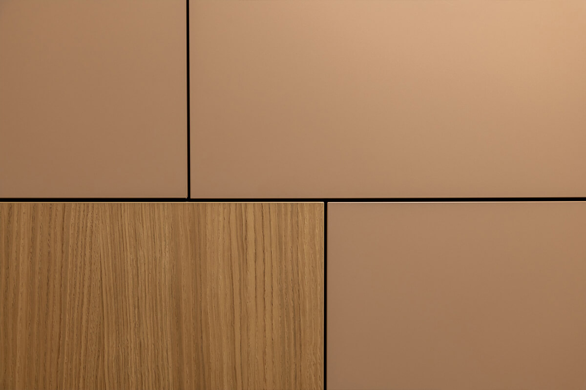ILUX is a special gloss lacquer finish. Its exceptional shine – corresponding to 96-97 gloss – results from an accurate UV lacquering cycle applied to a semi-finished panel faced with melamine resins in exactly the same colour, delivering aesthetic perfection and a refined visual appeal that adds depth to the finish.
